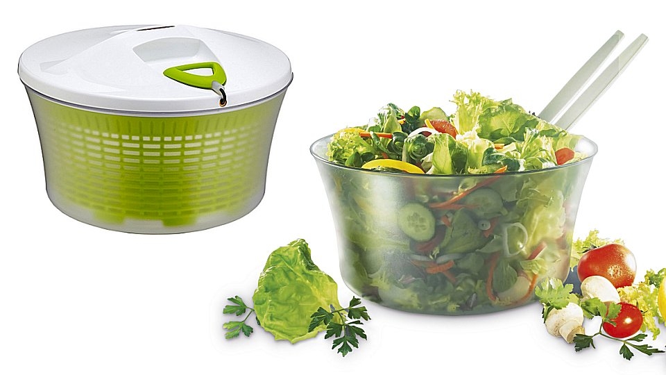De Leifheit slacentrifuge Signature kan naar wens op drie manieren tegelijk worden gebruikt: Met zijn unieke rechts-/links-draaimechanisme droogt deze centrifuge sla op zeer effectieve wijze. De prachtig gevormde kom is perfect geschikt voor het bereiden en serveren van sla. En de hittebestendige zeef kan tegelijkertijd worden gebruikt voor het afgieten van bijv. pasta. De draaischijf kan voor de hygiënische reiniging worden verwijderd.