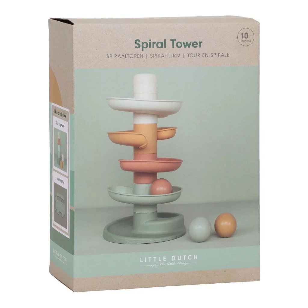 Laat de bal maar rollen! De spiraaltoren van Little Dutch zorgt voor eindeloos veel speelplezier. Deze kleurrijke set bestaat uit 5 subtiel gekleurde delen die jouw kleintje gemakkelijk op elkaar stapelt. Laat de ballen een voor een op de bovenste laag vallen en kijk hoe ze achter elkaar naar beneden rollen en slingeren. De spiraaltoren draagt bij aan de ontwikkeling van de hand-oog coördinatie en leert kleintjes over oorzaak en gevolg, waarmee het zowel leuk als leerzaam spelen is. Bij de spiraaltoren zitten standaard 3 lichte en gemakkelijk vast te pakken ballen in verschillende kleuren die bij beweging een geluidje maken. Dit speelgoed is uitgevoerd in de kenmerkende Little Dutch kleuren oudroze, roze, lichtroze, groen en okergeel. De afmeting is: 18 x 18 x 30 cm. Geschikt voor kinderen vanaf 10 maanden.