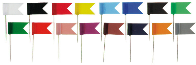 Deze markers in de vorm van vlaggetjes 'wapperen in de wind'. Je kunt ze gebruiken als markeringsvlaggetjes om bijvoorbeeld aan te geven waar je geweest bent op de wereldkaart. Deze signalisatiespelden zijn geschikt om in een prikbord of andere zachte ondergrond te prikken. 20 stuks in doosje. Kleur donkerblauw.