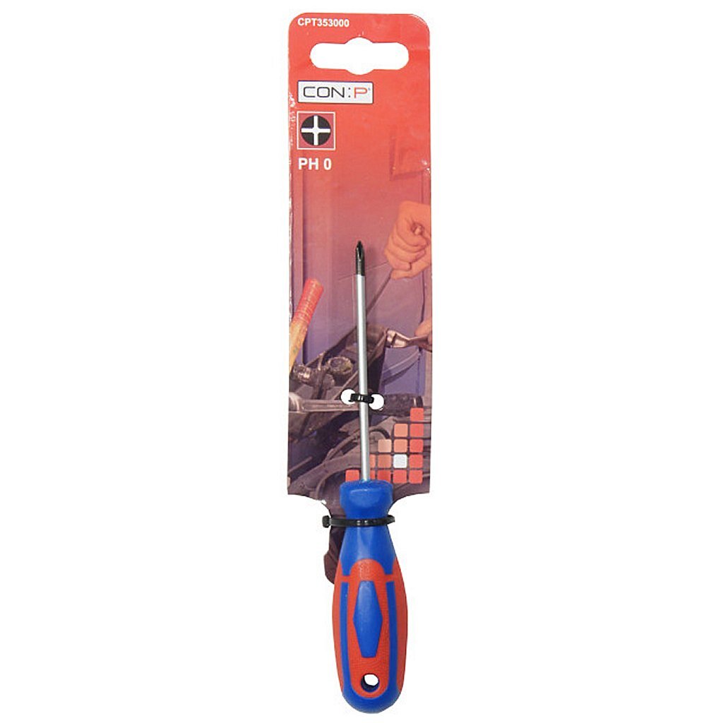 Con-P CPT353000 PH 0 kruiskopschroevendraaier voor PH-schroeven. Met ergonomische 2-componenten-handgreep. Met magnetische punt en ophanggat.