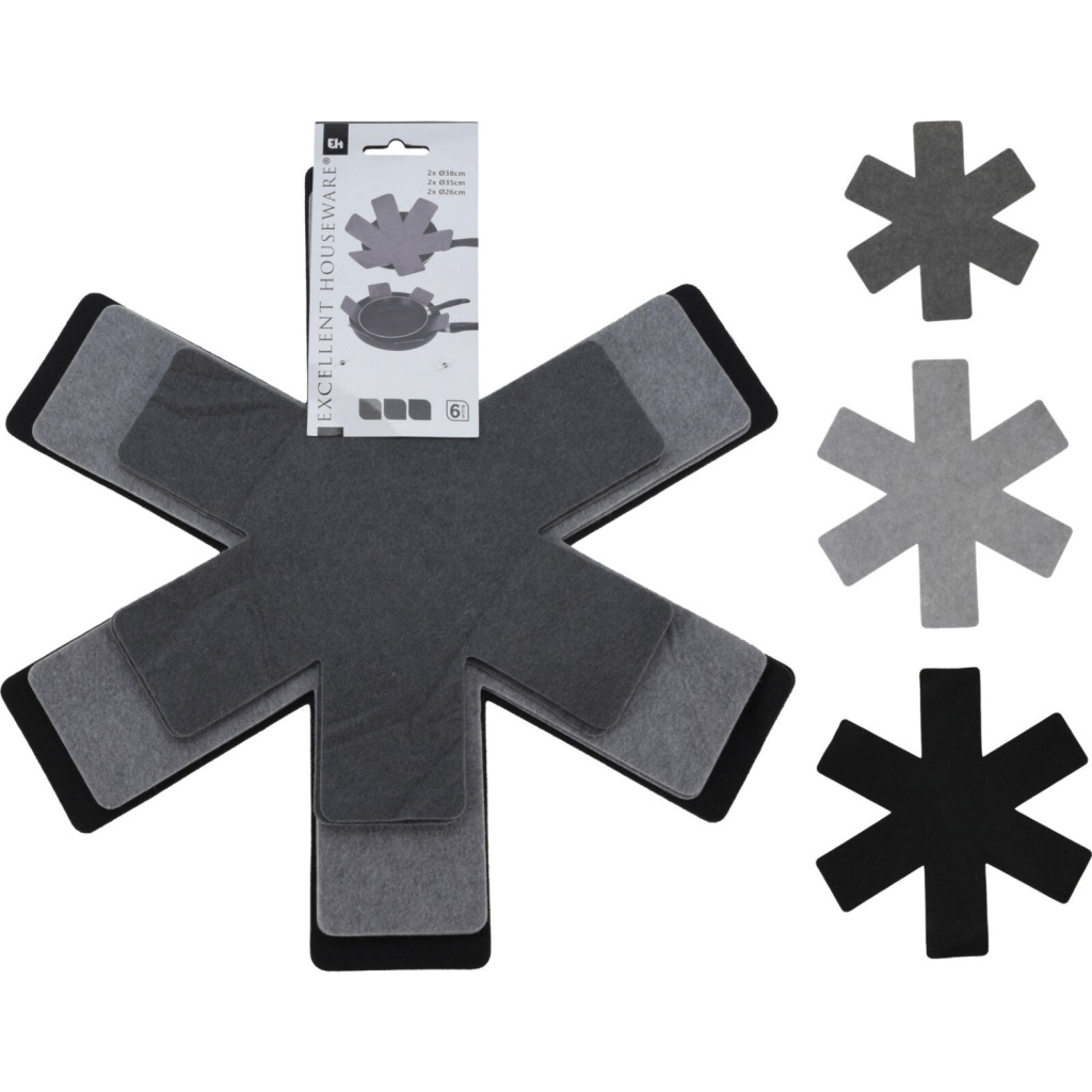 Excellent Houseware zwart-grijze panbeschermers met een diameter van 38, 35 en 26 cm. Inhoud: 6 stuks.