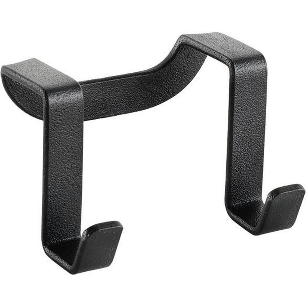 Handig hulpmiddel. Door hem achter een deur te haken creëer je 2 haakjes om jassen, tassen, handdoeken etc. aan op te hangen. Kleur: zwart/metaal.