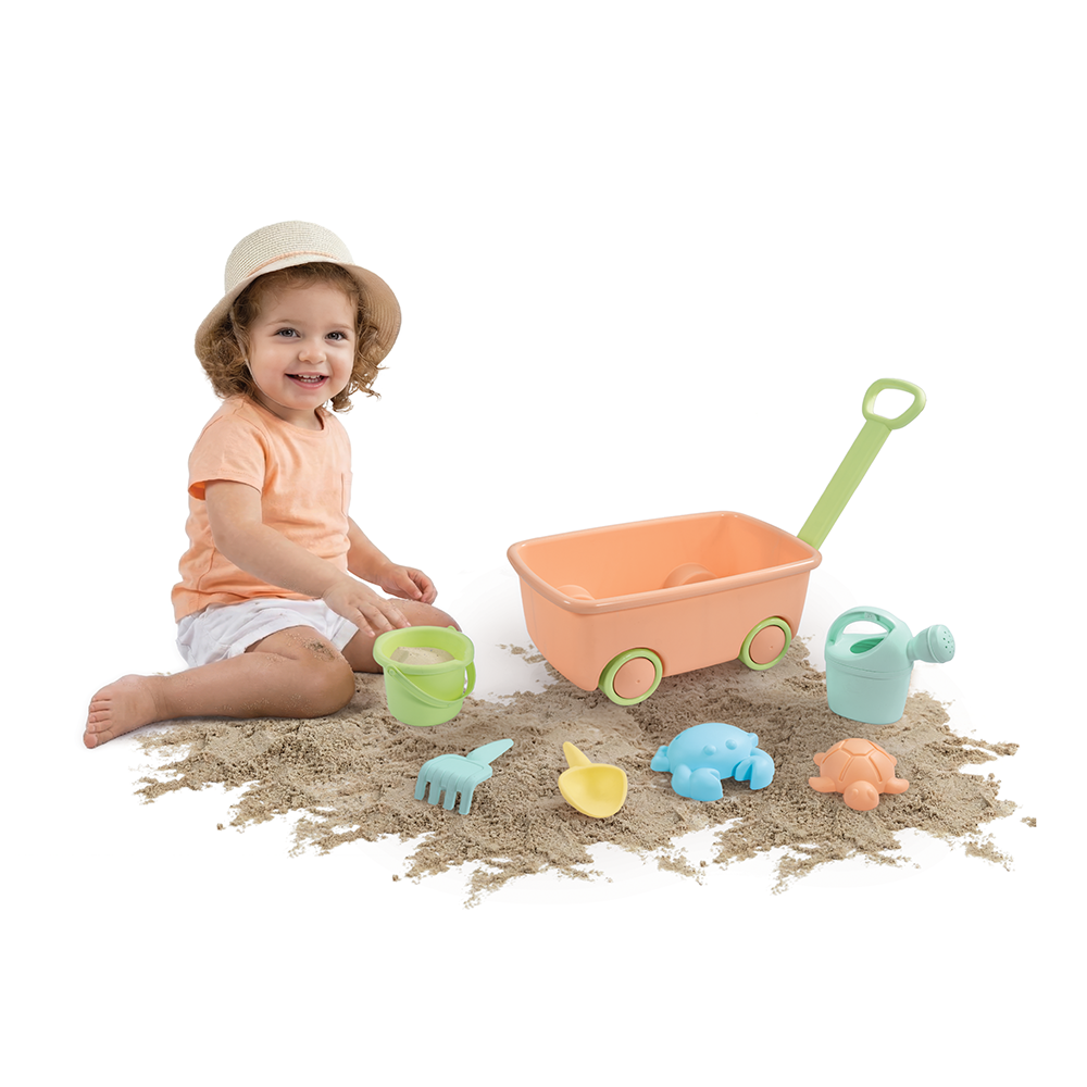 De set bevat diverse accessoires om urenlang zandkastelen te bouwen en creatief te spelen. Dankzij de stevige wielen en het lichte ontwerp is de trolley gemakkelijk te trekken, zelfs voor de allerkleinsten. Na het spelen kunnen alle onderdelen netjes worden opgeborgen in de trolley praktisch én overzichtelijk.