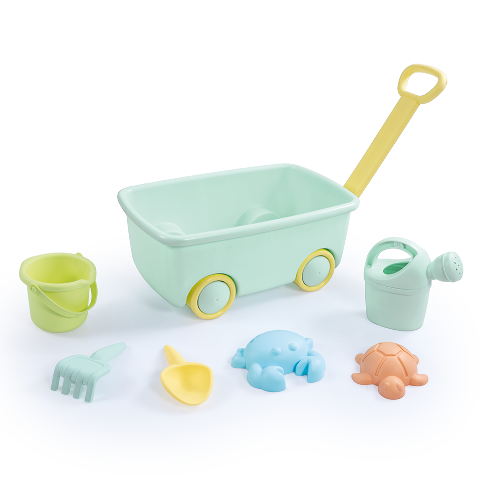 De set bevat diverse accessoires om urenlang zandkastelen te bouwen en creatief te spelen. Dankzij de stevige wielen en het lichte ontwerp is de trolley gemakkelijk te trekken, zelfs voor de allerkleinsten. Na het spelen kunnen alle onderdelen netjes worden opgeborgen in de trolley praktisch én overzichtelijk.
